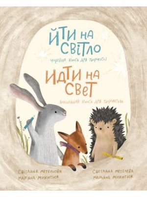 Видавництво FRESH VerlagISBN 9783910610026Автор Светлана Метельова, Мар'яна МикитюкРік видання 2022Йти на світло/Dem Licht folgen: книга для детей Украины, вынужденных бежать от войны, адаптироваться к новым условиям, во многих случаях – к новому языку и стране. Она состоит из нескольких историй и творческих заданий, созданных в соответствии с методами арт-терапии и сказкотерапии.